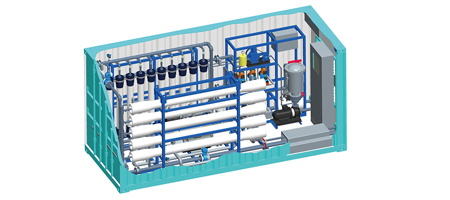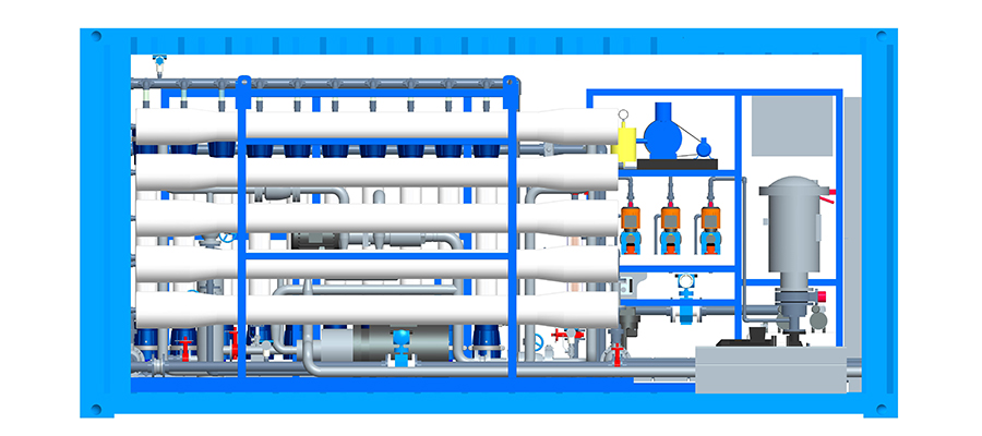 Una planta desalinizadora en contenedores es una solución de tratamiento de agua que combina un sistema de ultrafiltración (UF) y ósmosis inversa (RO) construido dentro de un contenedor metálico. La membrana de ósmosis inversa permite el paso de las moléculas de agua, pero rechaza los iones salinos y diversos contaminantes, separándolos del agua de mar mediante un proceso impulsado por la presión. La planta desalinizadora UF-RO, que combina el pequeño tamaño de un sistema integrado de tratamiento de agua con las ventajas de los procesos de ultrafiltración y ósmosis inversa, la planta tiene una operación completamente autónoma con gran flexibilidad para adaptarse a su aplicación de desalinización.